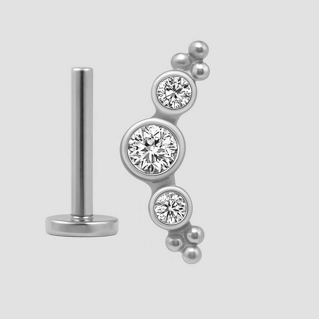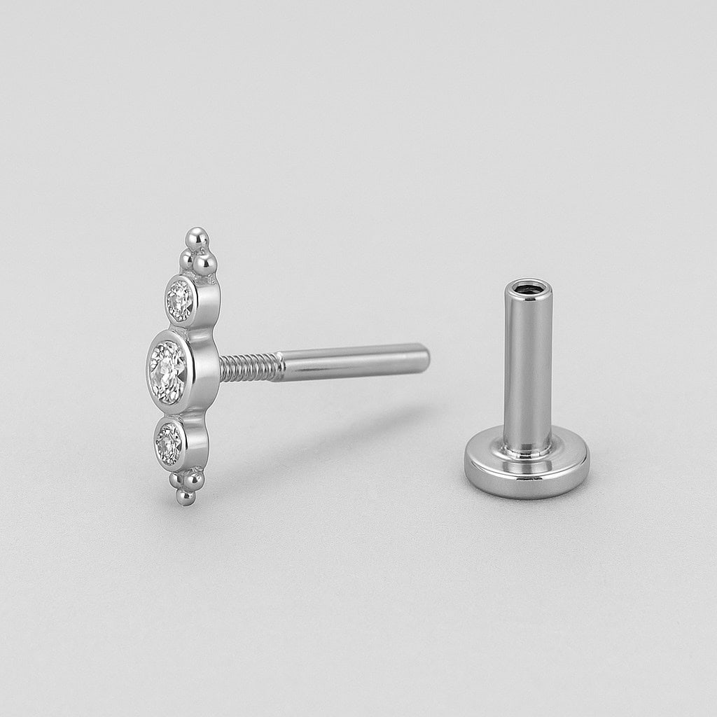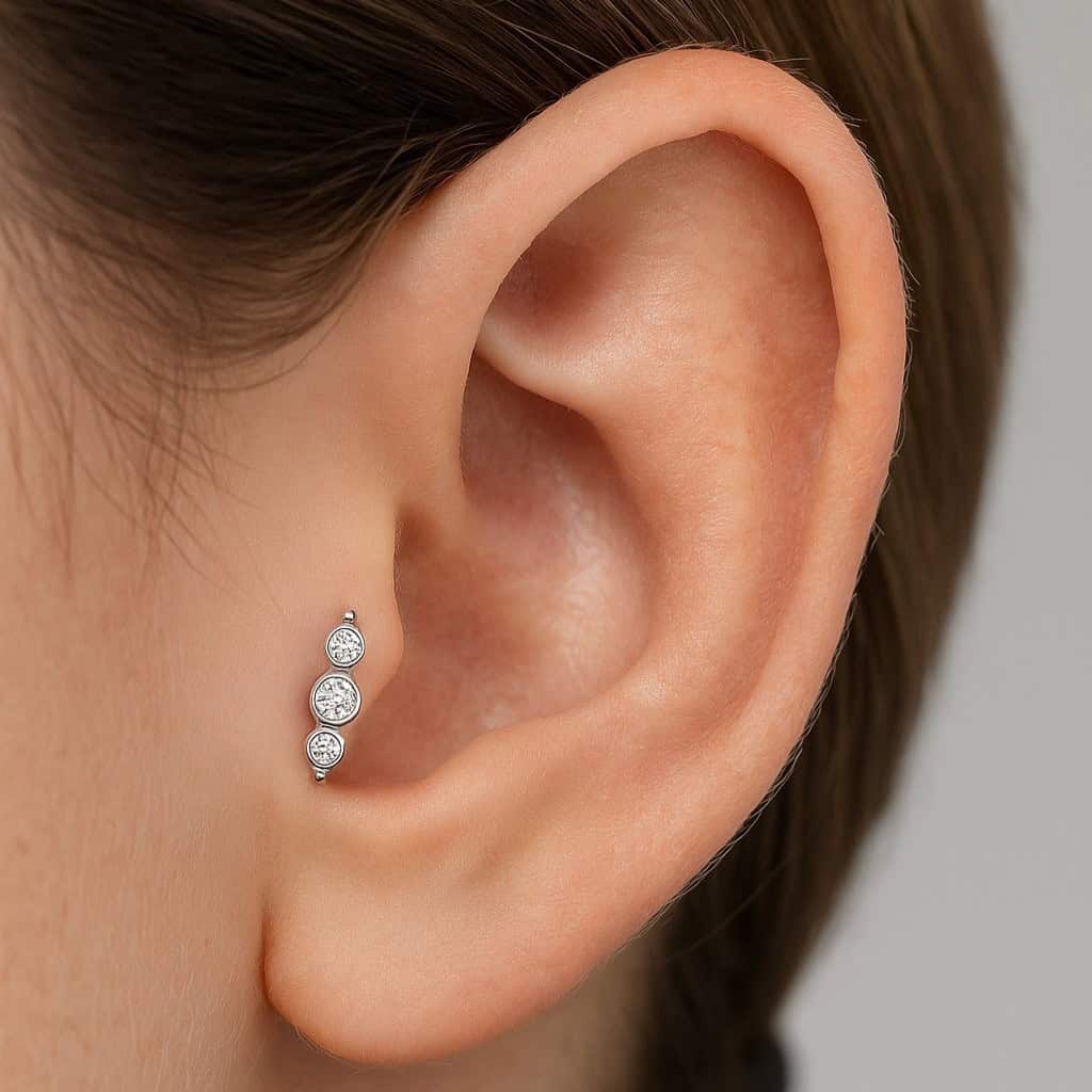 עגיל קשת (בודד) משובץ שלושה יהלומים זהב לבן לפירסינג