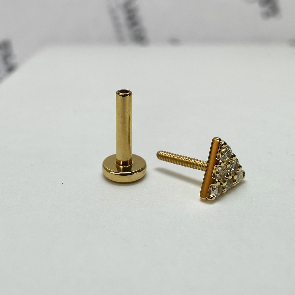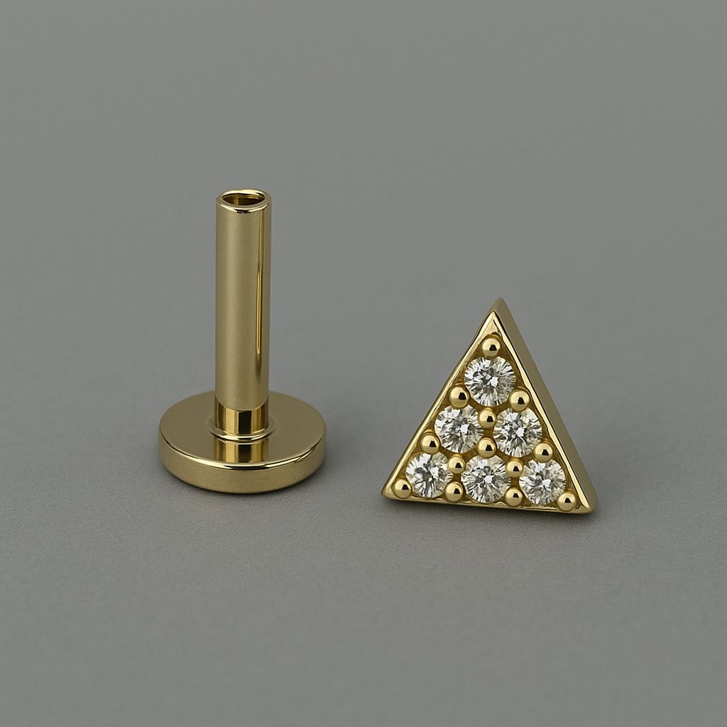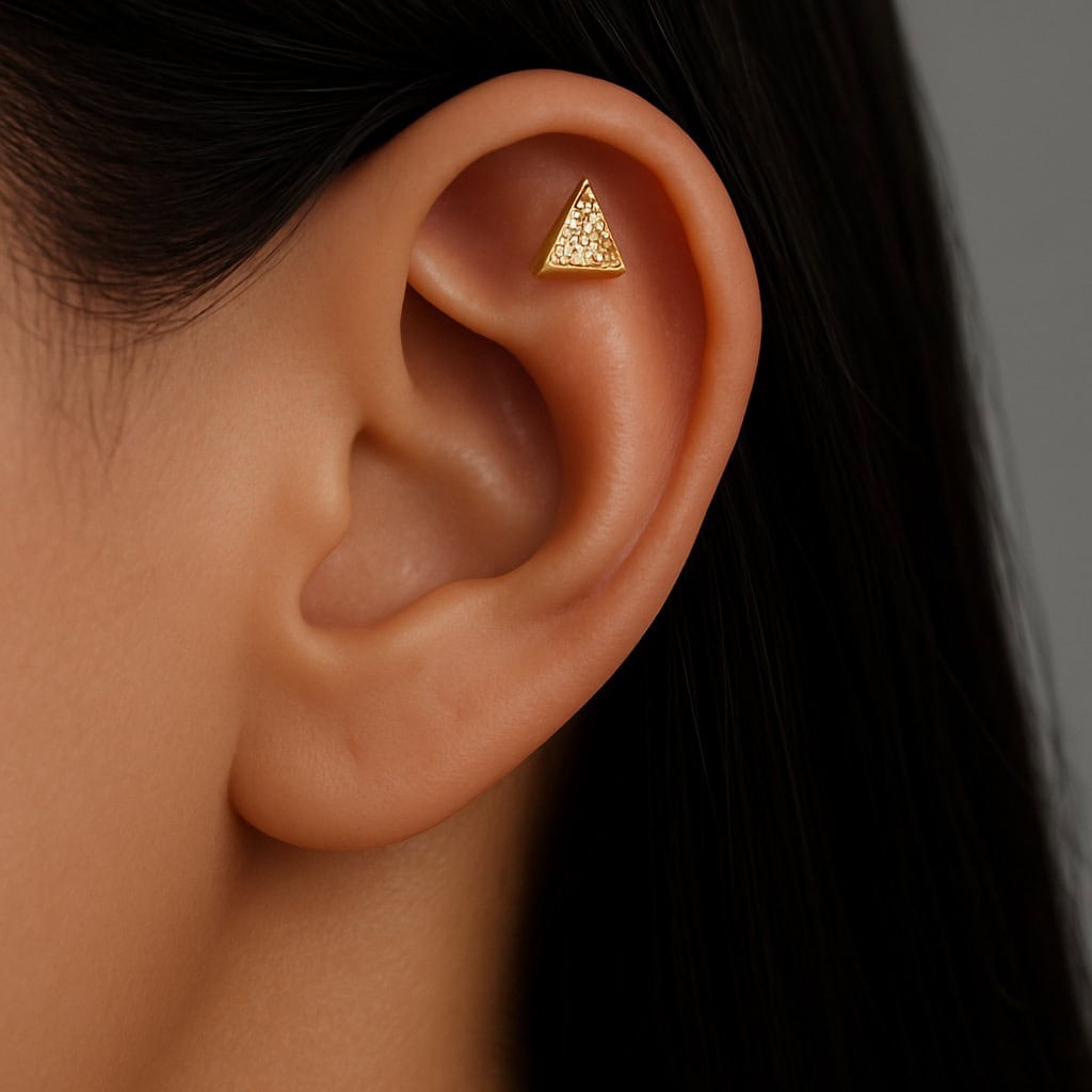 עגיל משולש (בודד) מזהב צהוב עם יהלומי מעבדה