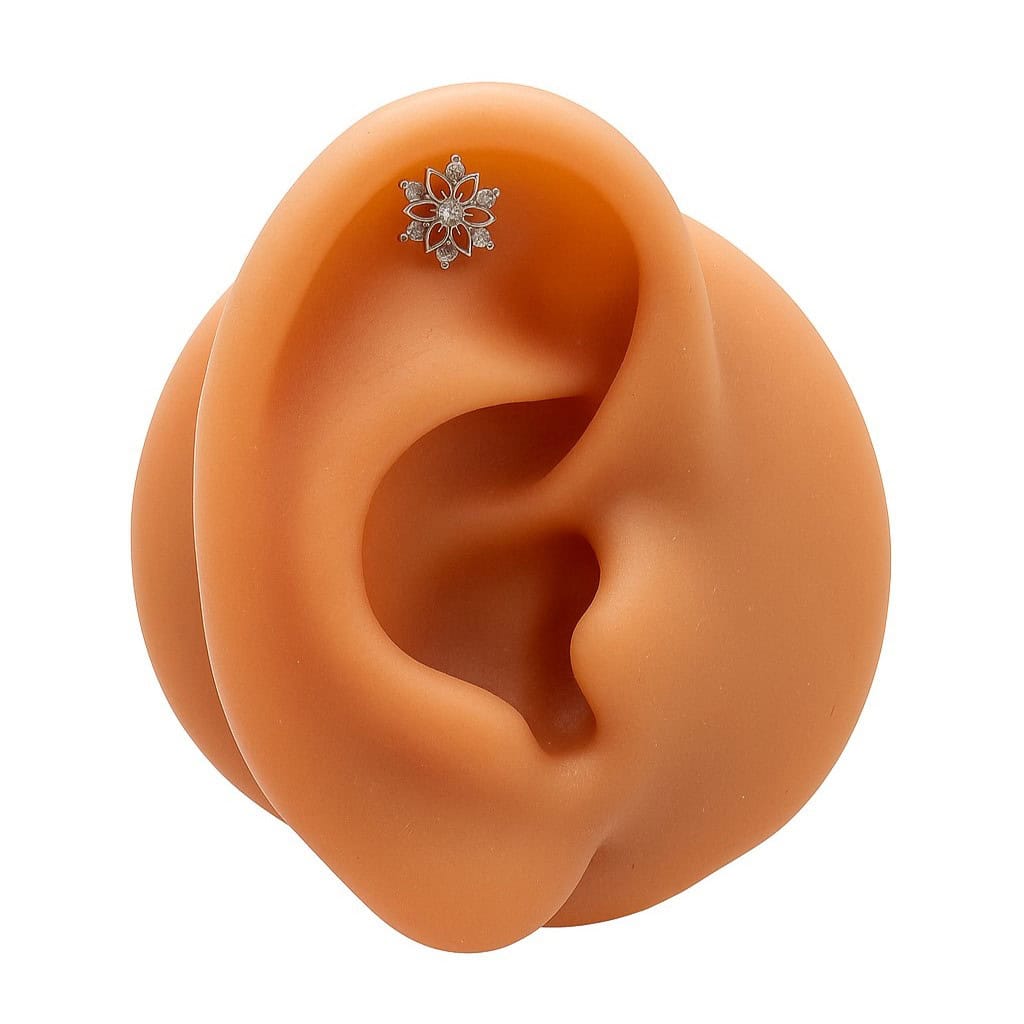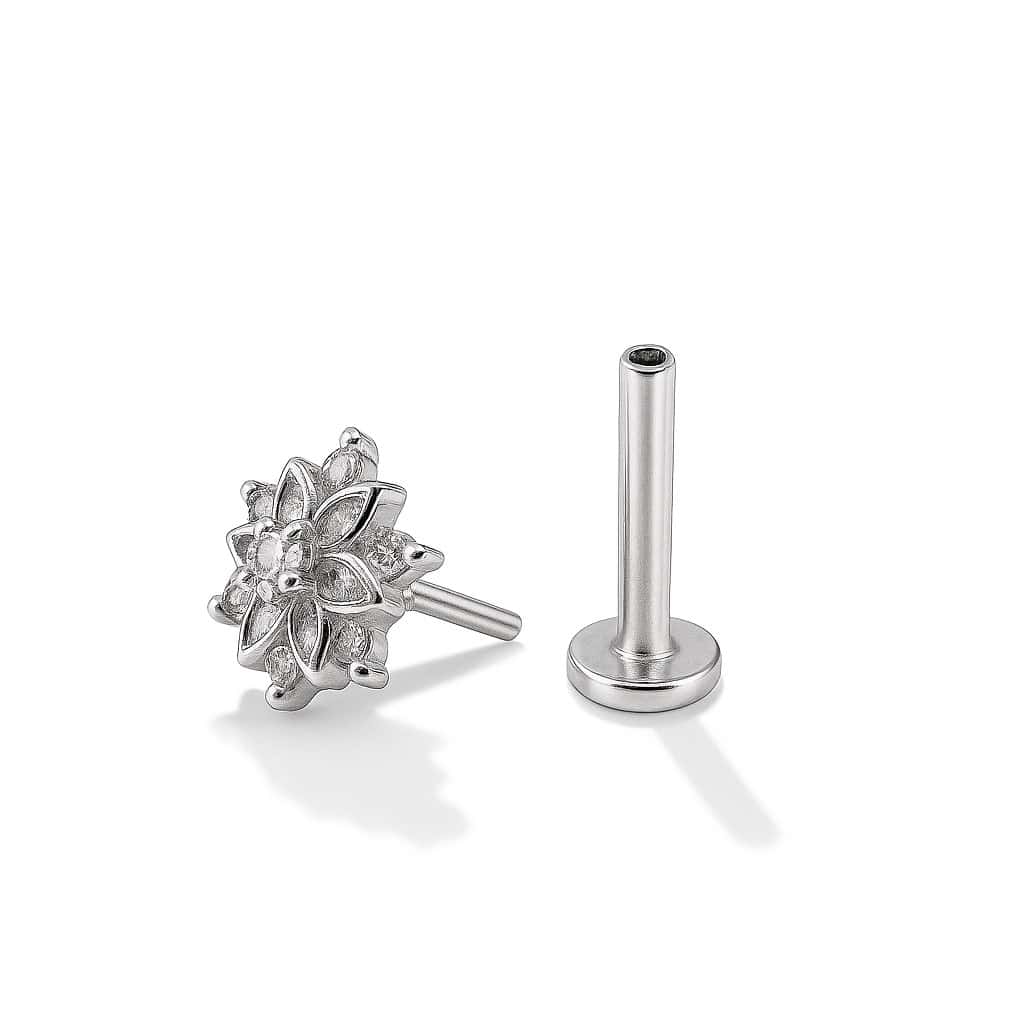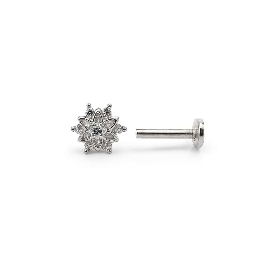 עגיל פירסינג (בודד) בצורת פתית שלג עם יהלומים לבנים