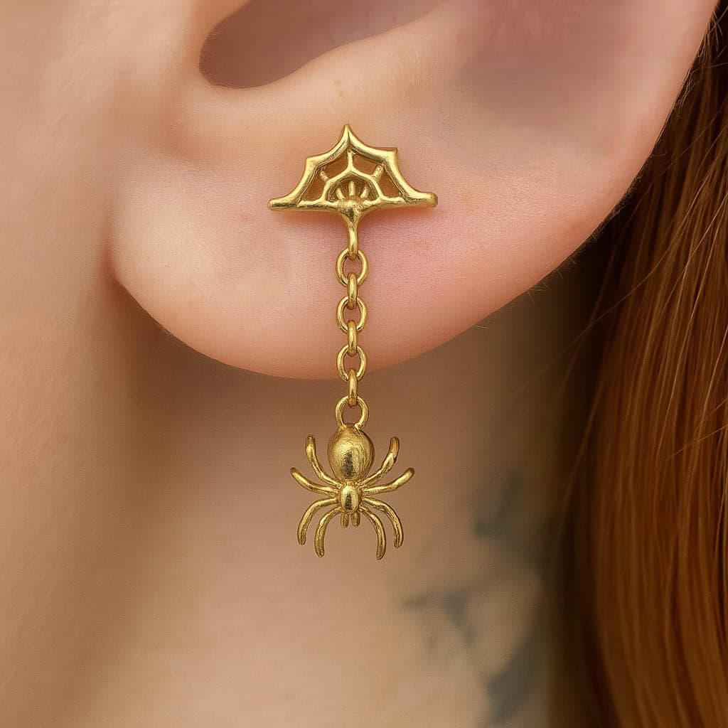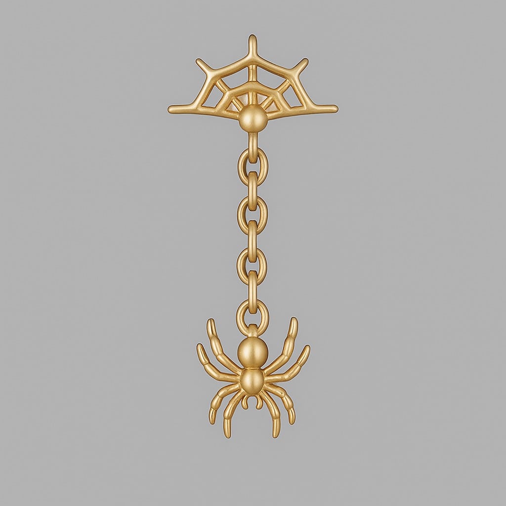פירסינג (בודד) מזהב תלוי עם עכביש וקורי עכביש | דיימונד פקטורי