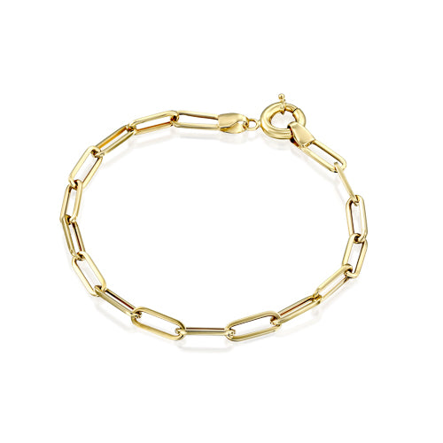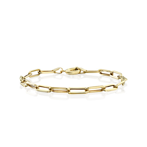 צמיד אטבים מזהב צהוב בעיצוב מודרני עם חוליות ארוכות למראה ייחודי