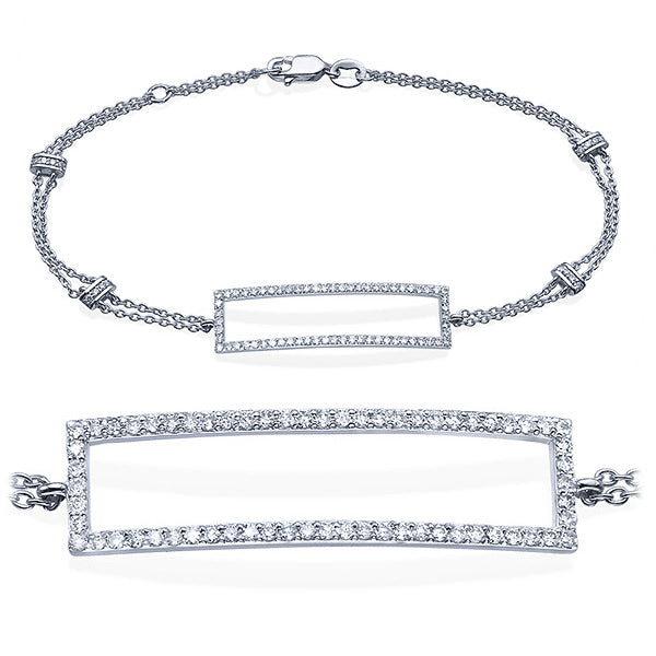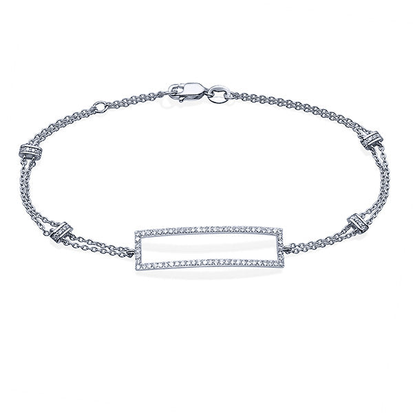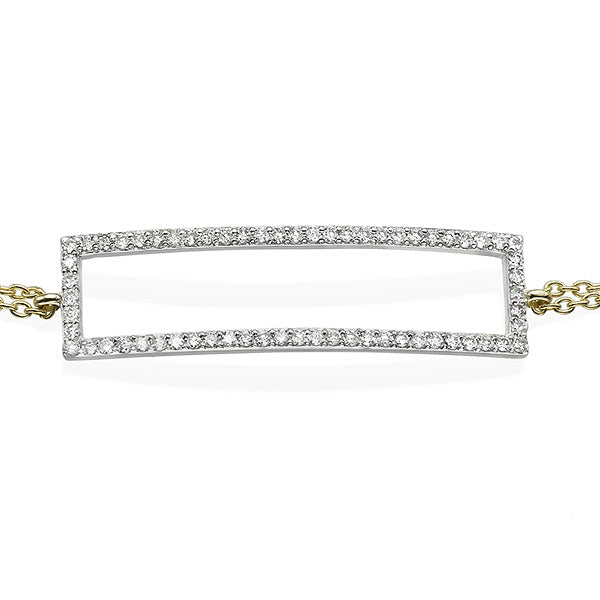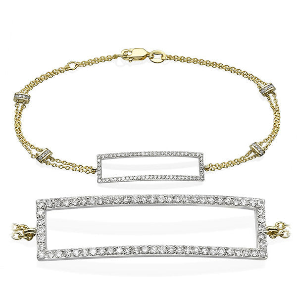 צמיד זהב עם חוליות כפולות ומשבצת מלבן משובצת יהלומים טבעיים 0.50 קראט