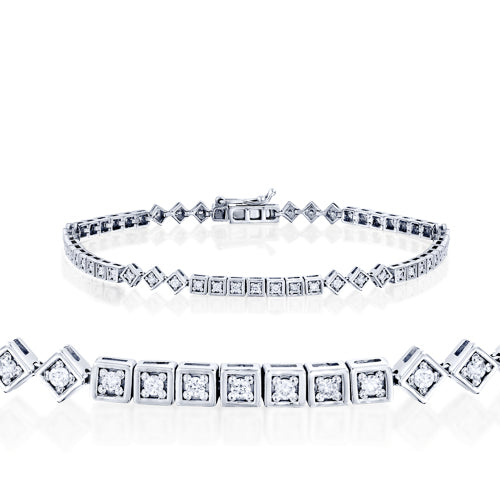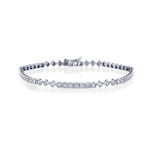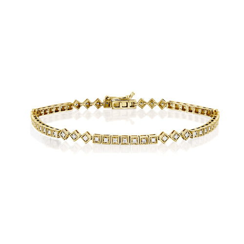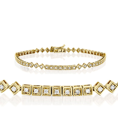 צמיד טניס מעוצב מזהב עם חוליות מרובעות משובצות יהלומים טבעיים