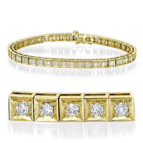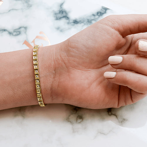 צמיד טניס מרובע מזהב עם יהלומים שוקולד טבעיים במשקל כולל של שני קראט