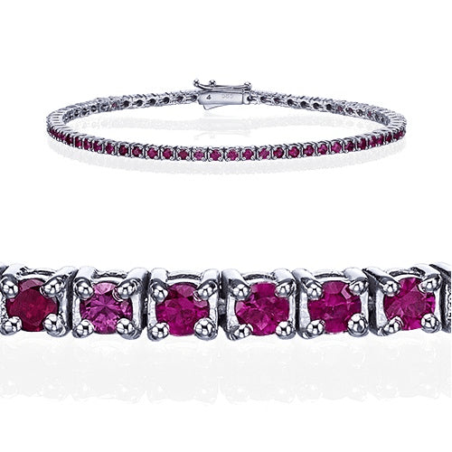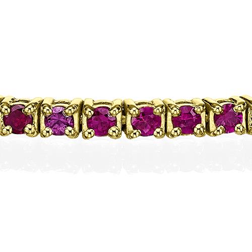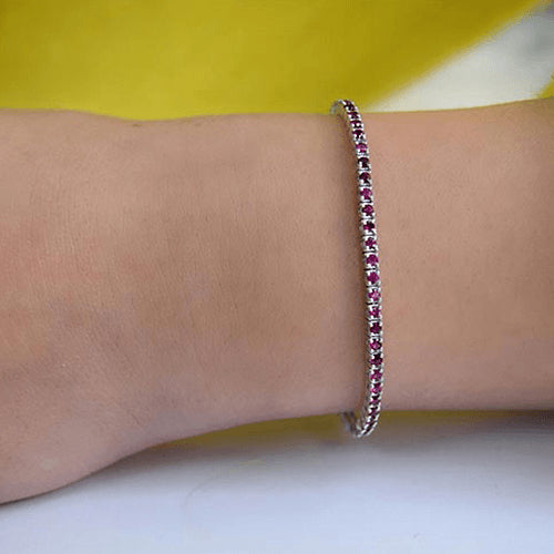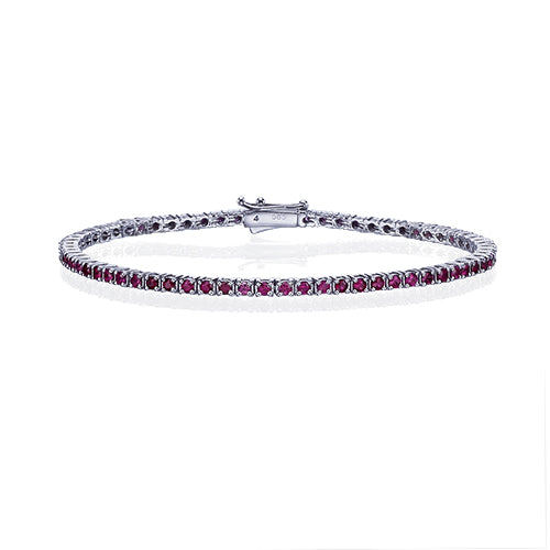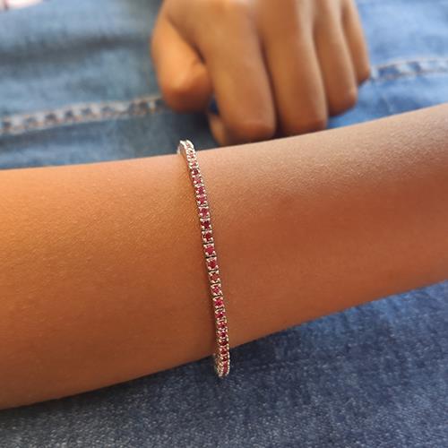 צמיד טניס מזהב לבן משובץ אבני רובי טבעיות לאורך כל החוליות בצבע חזק