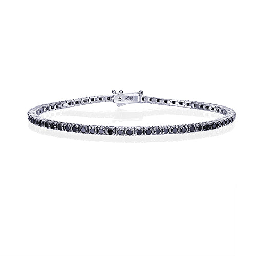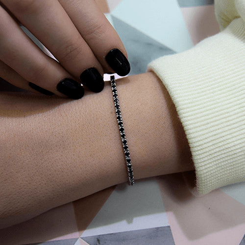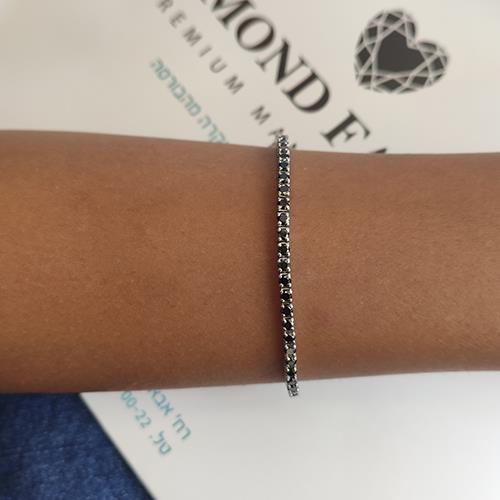 צמיד טניס מזהב צהוב המשובץ יהלומים שחורים טבעיים בכל חוליה השיבוץ מבליט את הצבע הכהה של האבנים ויוצר רצף אחיד לאורך היד המבנה של החוליות מספק יציבות ותנועה נוחה הצמיד מעניק הופעה חזקה שקל לזהות ומשתלב היטב עם תכשיטים בגווני זהב צהוב ניתן לענוד אותו כפריט יחיד או לצד צמידים נוספים משקל היהלומים השחורים בצמיד הוא 2.75 קראט