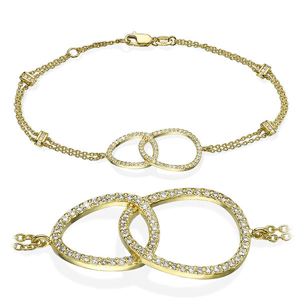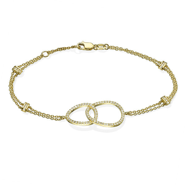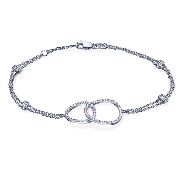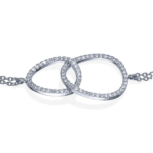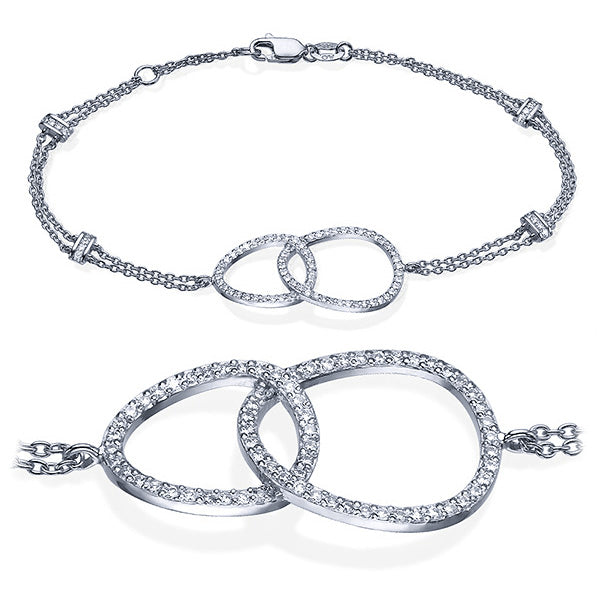 צמיד אינפיניטי מזהב לבן עם שתי לולאות משובצות יהלומים טבעיים לכל אורכו