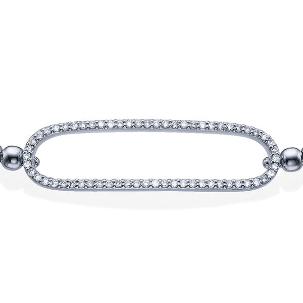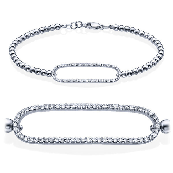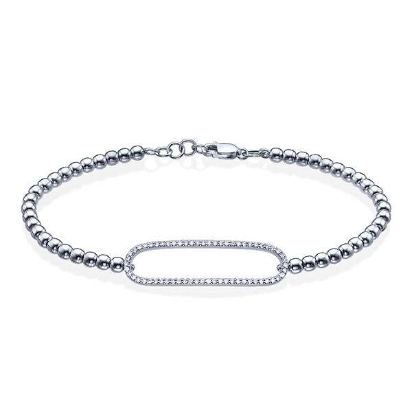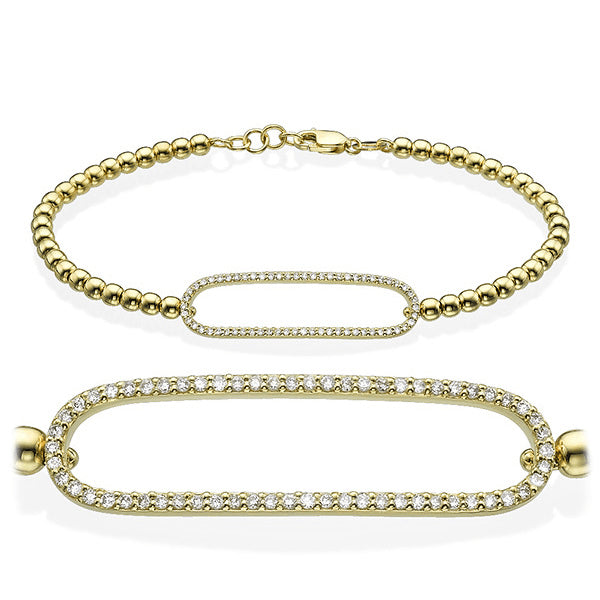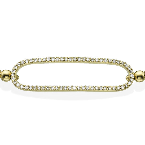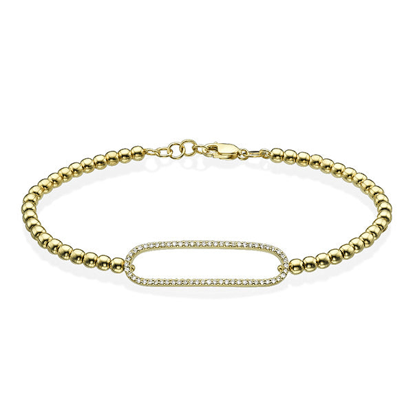 צמיד זהב עם חוליות כדור ואלמנט מלבני משובץ יהלומים טבעיים לכל אורכו