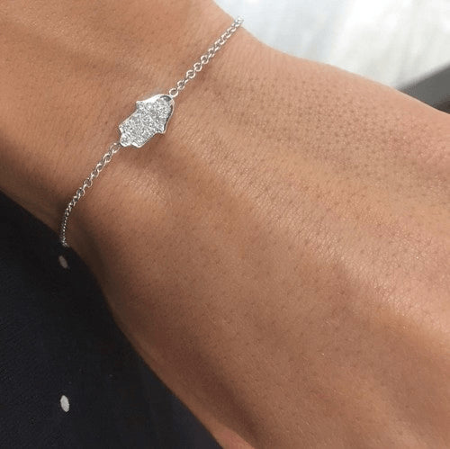 צמיד חמסה מזהב המשובץ יהלומים טבעיים במשקל כולל של 0.15 קראט