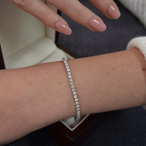 צמיד טניס זהב לבן עם שיבוץ שיניים משובץ יהלומים טבעיים במשקל של 3 קראט