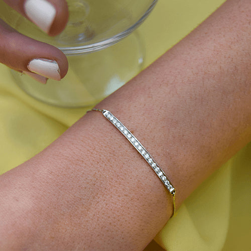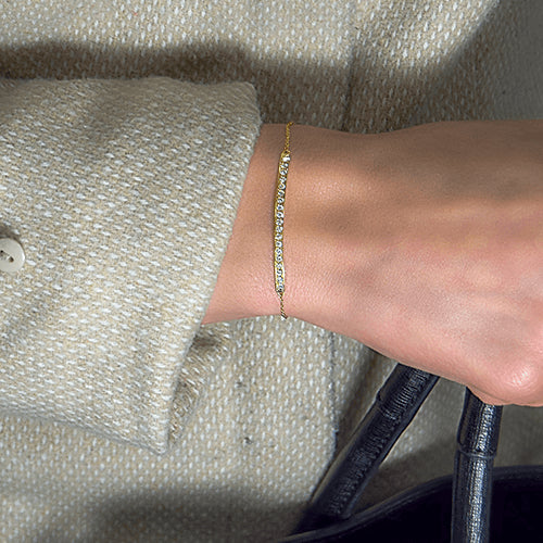 צמיד טניס זהב עם חוליות דקות ושורת יהלומים טבעיים במרכז 0.40 קראט