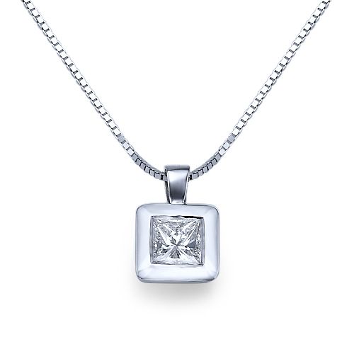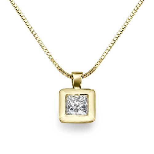 שרשרת זהב עם תליון יהלום פרינסס מרובע בשיבוץ בזל מדויק