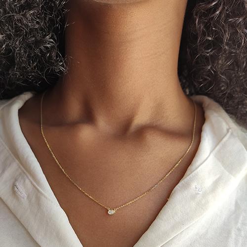 שרשרת יהלום טיפה טבעי בשיבוץ Bezel מזהב בעיצוב נקי אלגנטי לכל הופעה