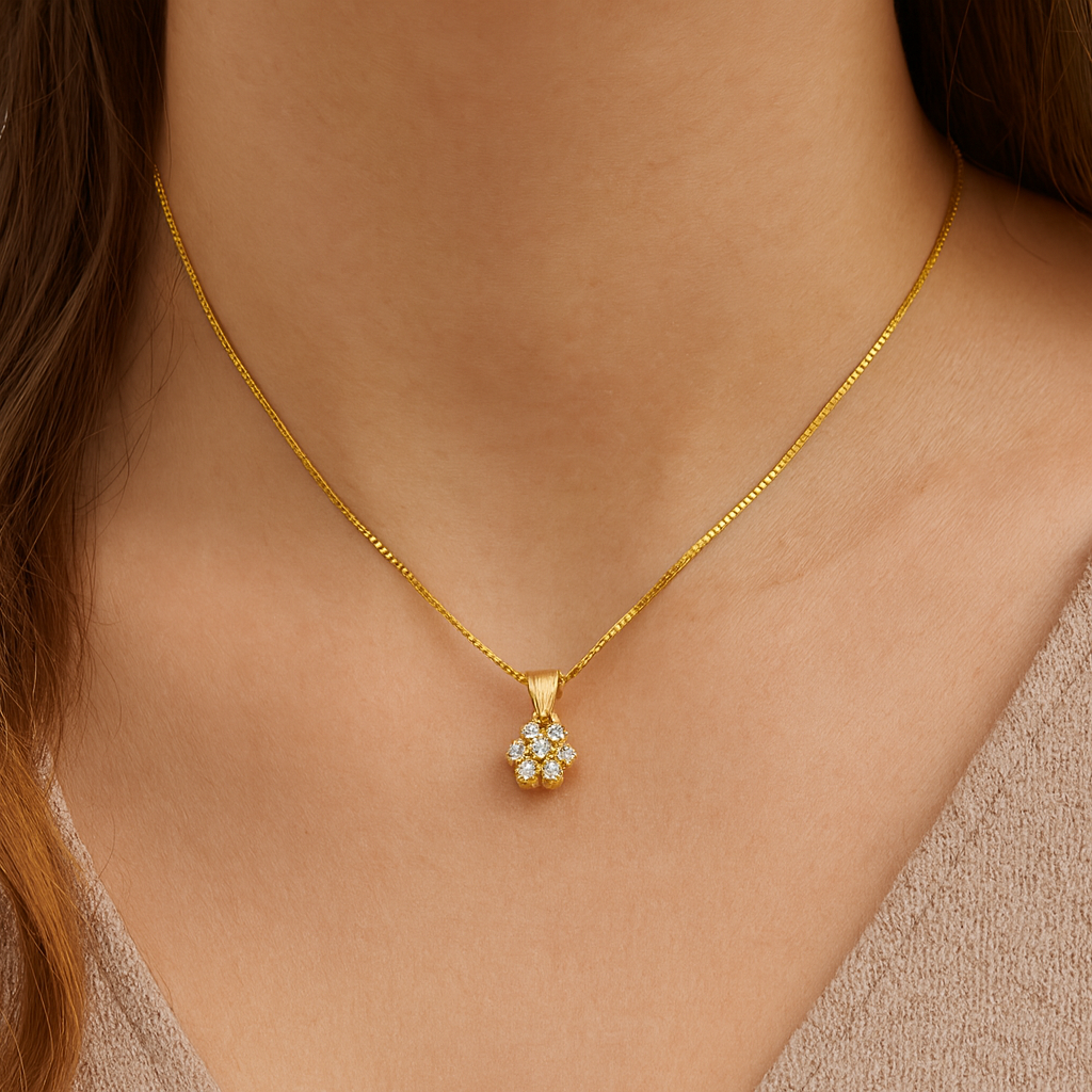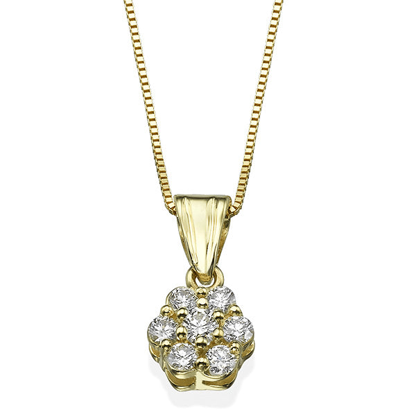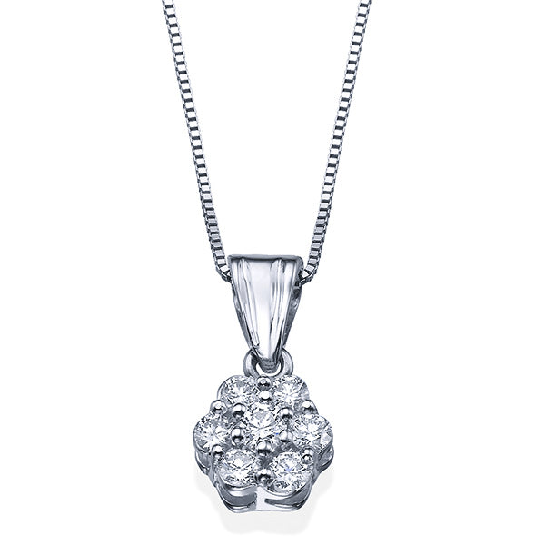 תליון פרח יהלומים מזהב לבן בעיצוב קלאסי אלגנטי ומלא ברק מרשים ונצחי