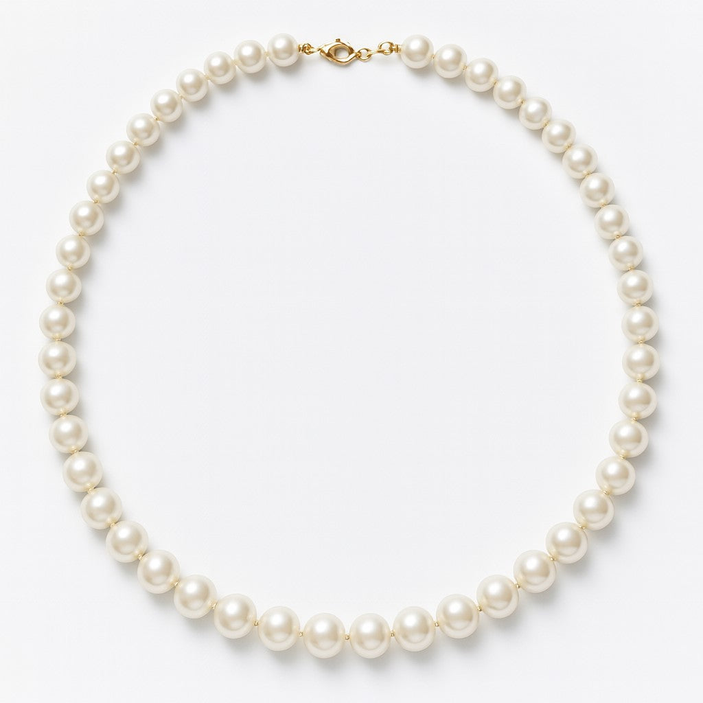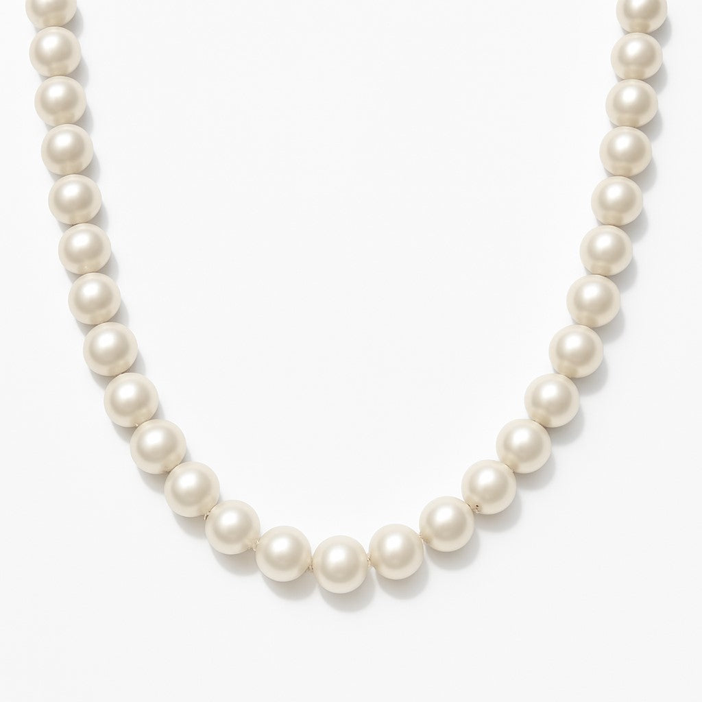 שרשרת פנינים קלאסית בעיצוב על זמני עם פנינים עגולות בעלות ברק טבעי המונחות ברצף מושלם ויוצרות מראה נשי ואלגנטי המתאים לכל סגנון ומעניק תחושת יוקרה רכה עדינות ונוכחות במחיר שמשלים כל הופעה יומיומית או ערב באופן מושלם קוטר הפנינים הוא כ-7 מילימטר ואורך השרשרת הוא 44 סנטימטר