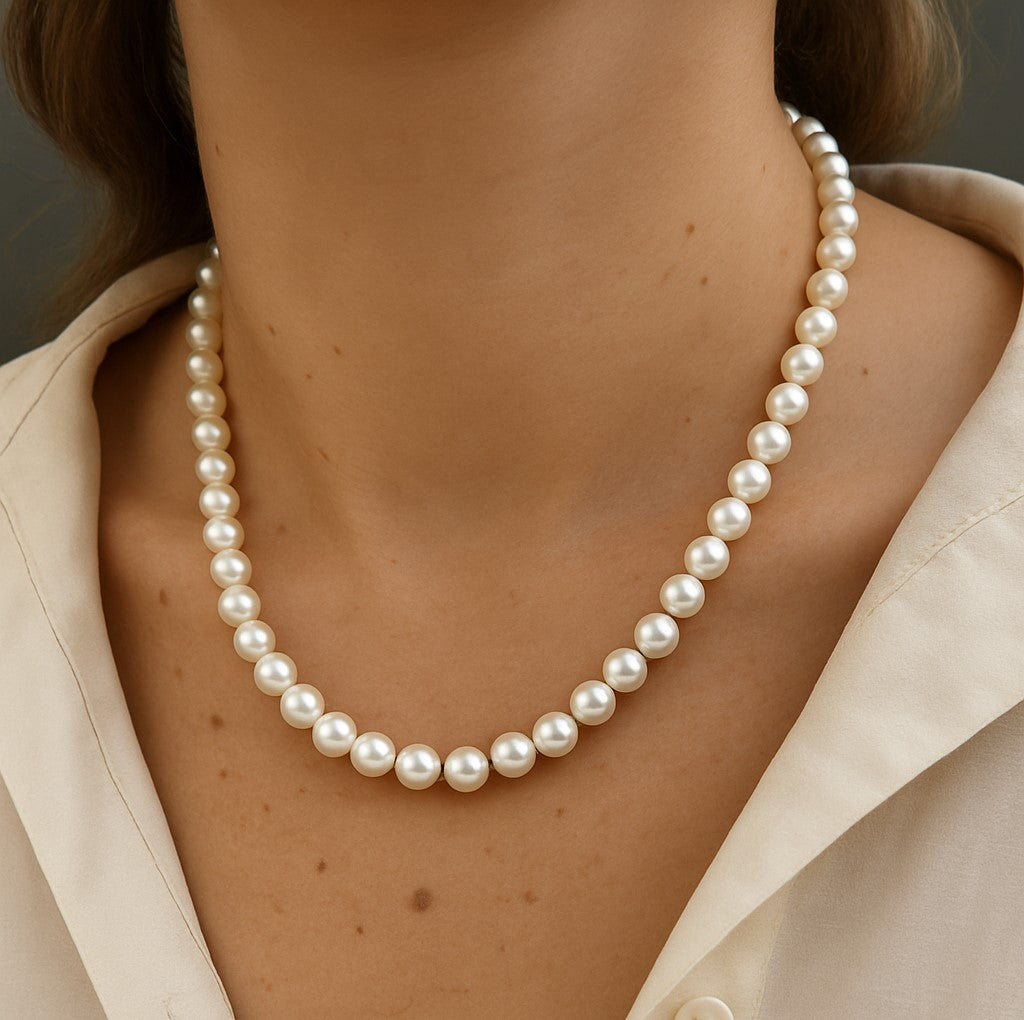 שרשרת פנינים קלאסית בעיצוב יוקרתי ונשי עם ברק טבעי ועדין