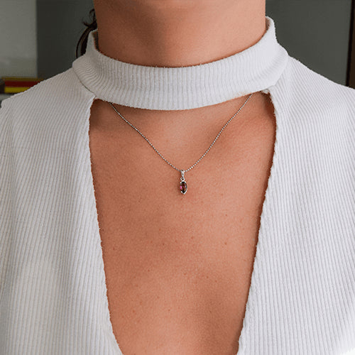 שרשרת זהב לבן עם אבן טורמלין אובלית ורודה מוארכת