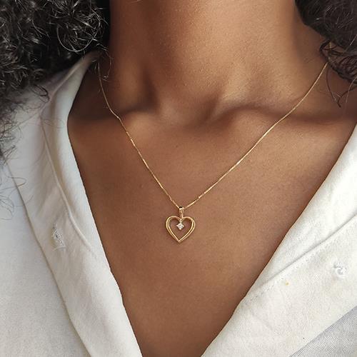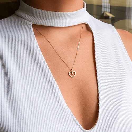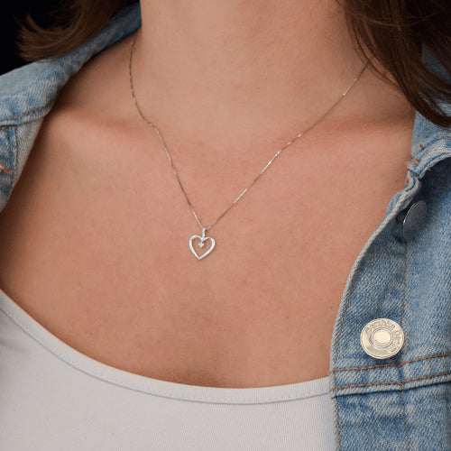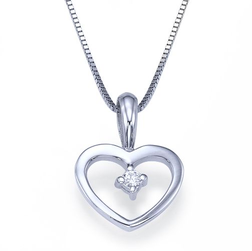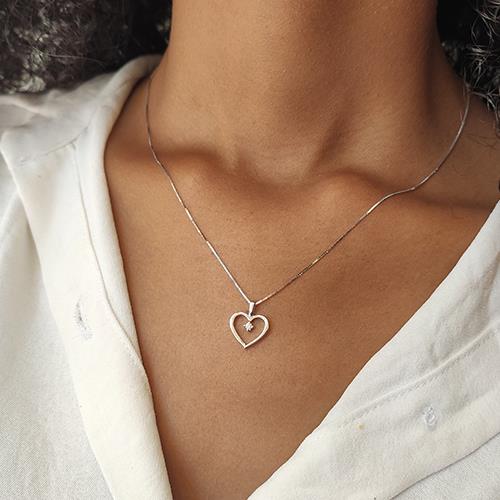 שרשרת זהב לבן עם תליון לב ויהלום טבעי במרכז בעיצוב עדין