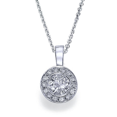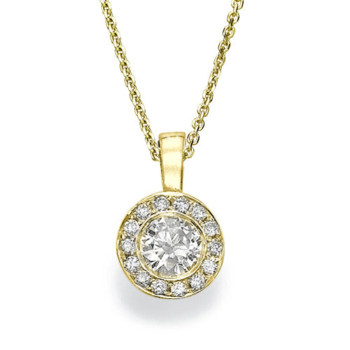 שרשרת יהלומים 0.40 קראט במראה עגול והילה של יהלומים טבעיים