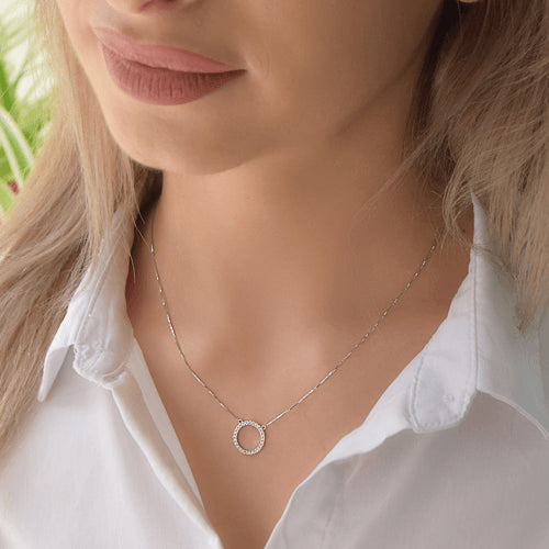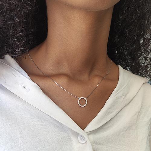 שרשרת מעגל החיים זהב לבן עם יהלומים טבעיים במשקל כולל 0.25 קראט