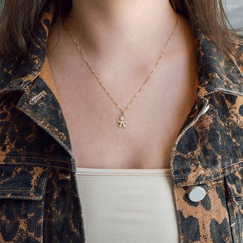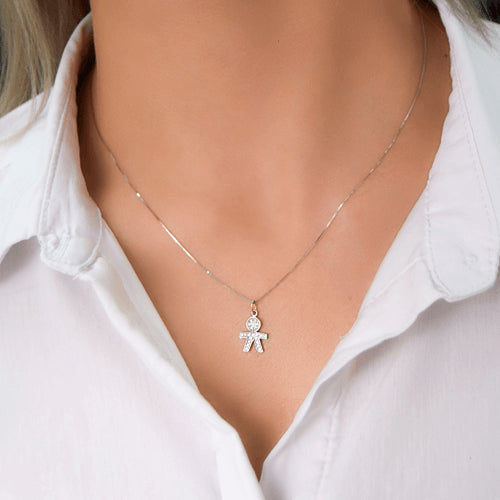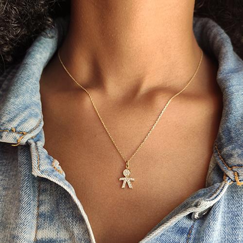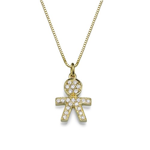 תליון יהלום ילד משובץ ב 22 יהלומים 0.20 קראט על שרשרת זהב