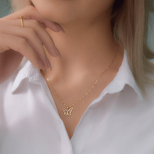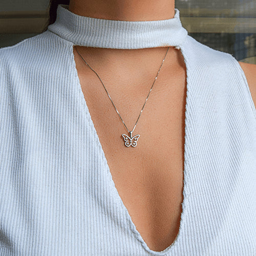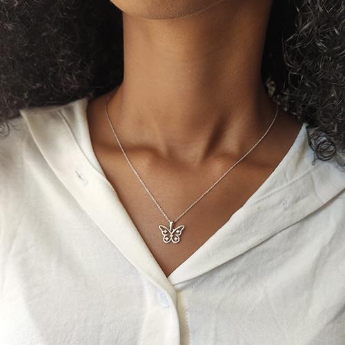 שרשרת יהלומים מזהב בעיצוב פרפר ובשיבוץ יהלומים במשקל 0.11 קראט