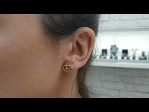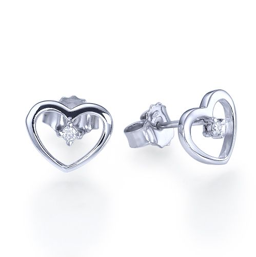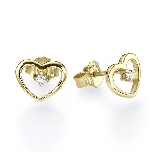 עגילי לב צמודים מזהב עם יהלום טבעי באמצע