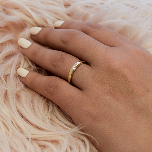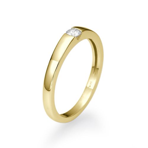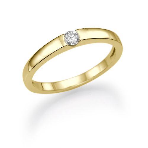 טבעת אירוסין קלאסית ועדינה בעיצוב נקי. השיבוץ של היהלום יוצר מראה שקוע ולא בולט ומבלי לפגוע בברק המרהיב של היהלום. טבעת אירוסין זהב צהוב עם יהלום מרכזי במשקל: 0.11 קראט (משקל יהלומים כולל 0.11 קראט) בצבע F וניקיון יהלום VS2.